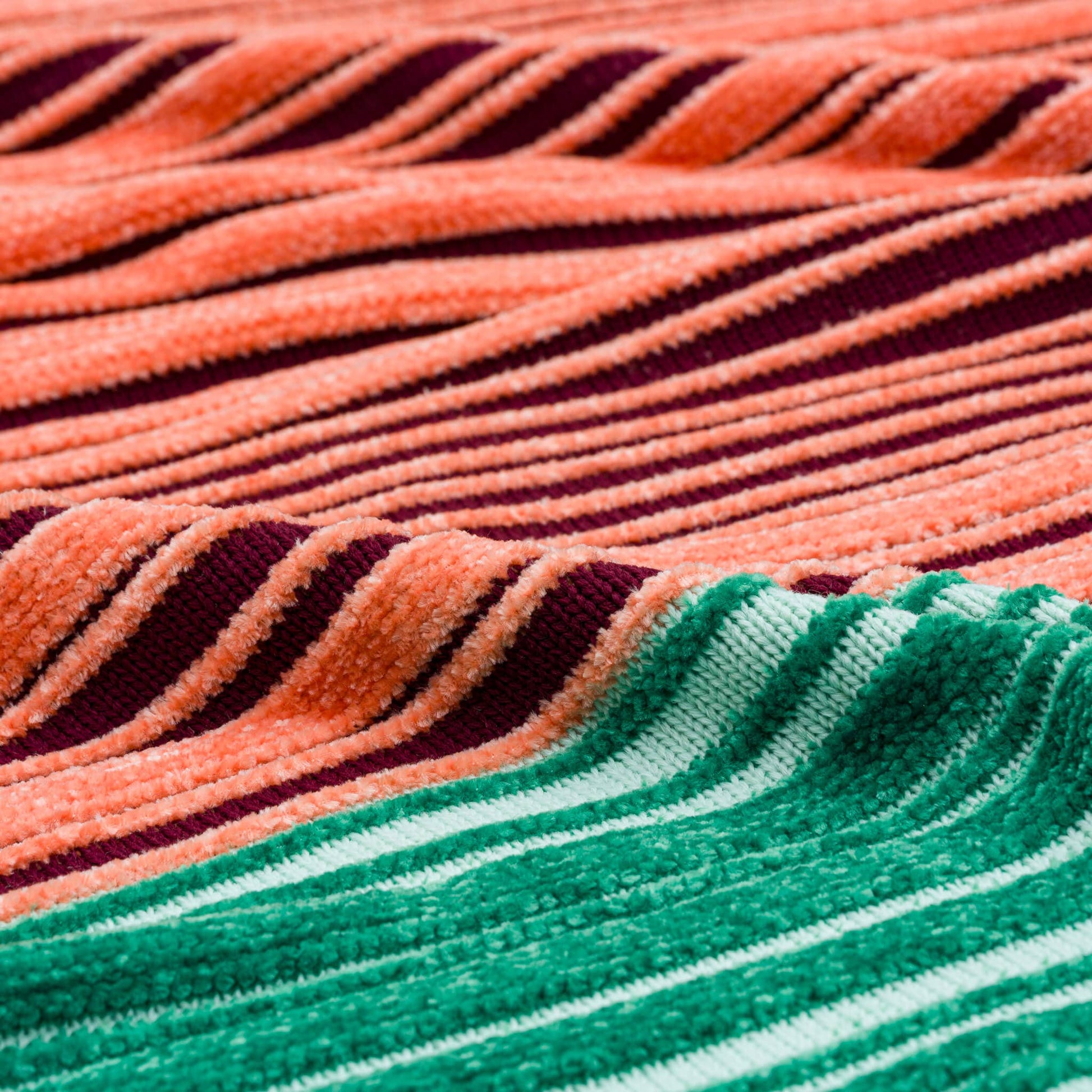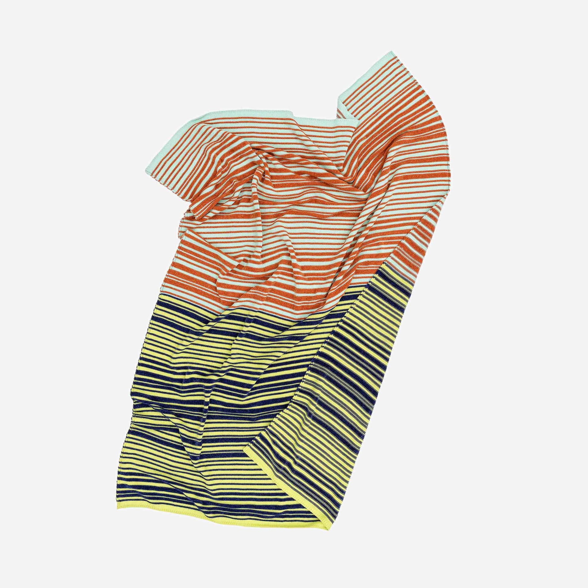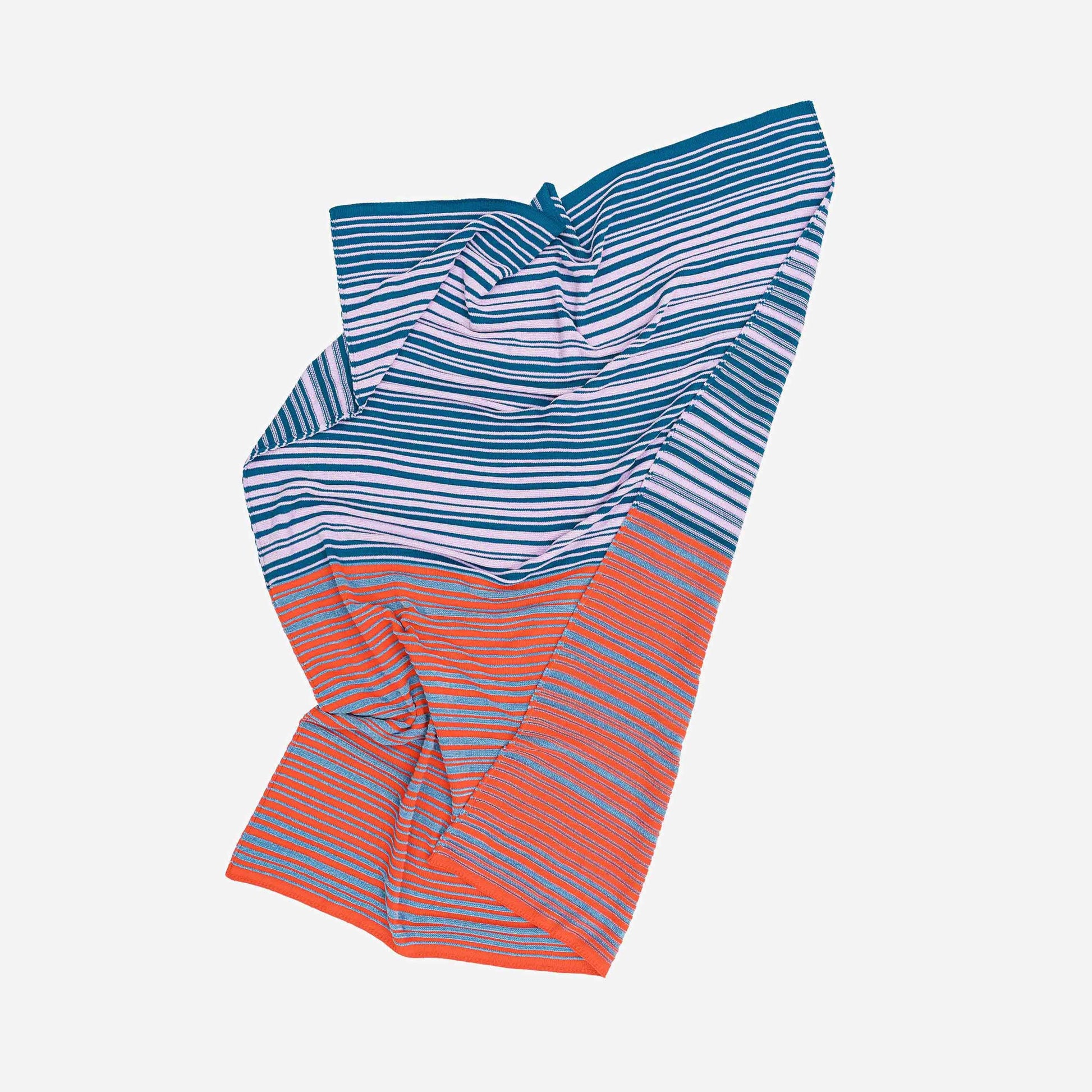 Colorblocked knit throw with two-tone dimensional chenille stripes. Mix and match with contrasting patterns or layer with coordinating pillows, here and here, for a high-impact look. Fully reversible.